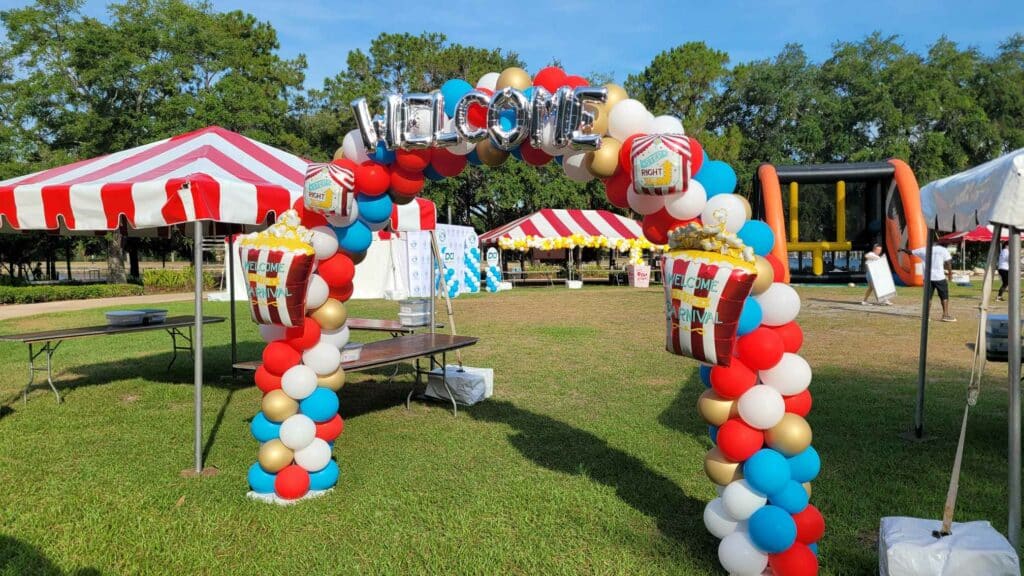 The centerpiece of the event will undoubtedly be the giant balloon popcorn bucket. Standing tall and proud, it will serve as both a decorative masterpiece and a symbol of your fundraiser’s theme. The bucket will be surrounded by various popcorn stations offering flavors from classic butter to kettle and caramel corn, ensuring there is something for every palate. Kids and adults alike will marvel at the creativity and effort put into every detail, from the popcorn-shaped balloons to the festive table settings to the corn hole and other corny games.
