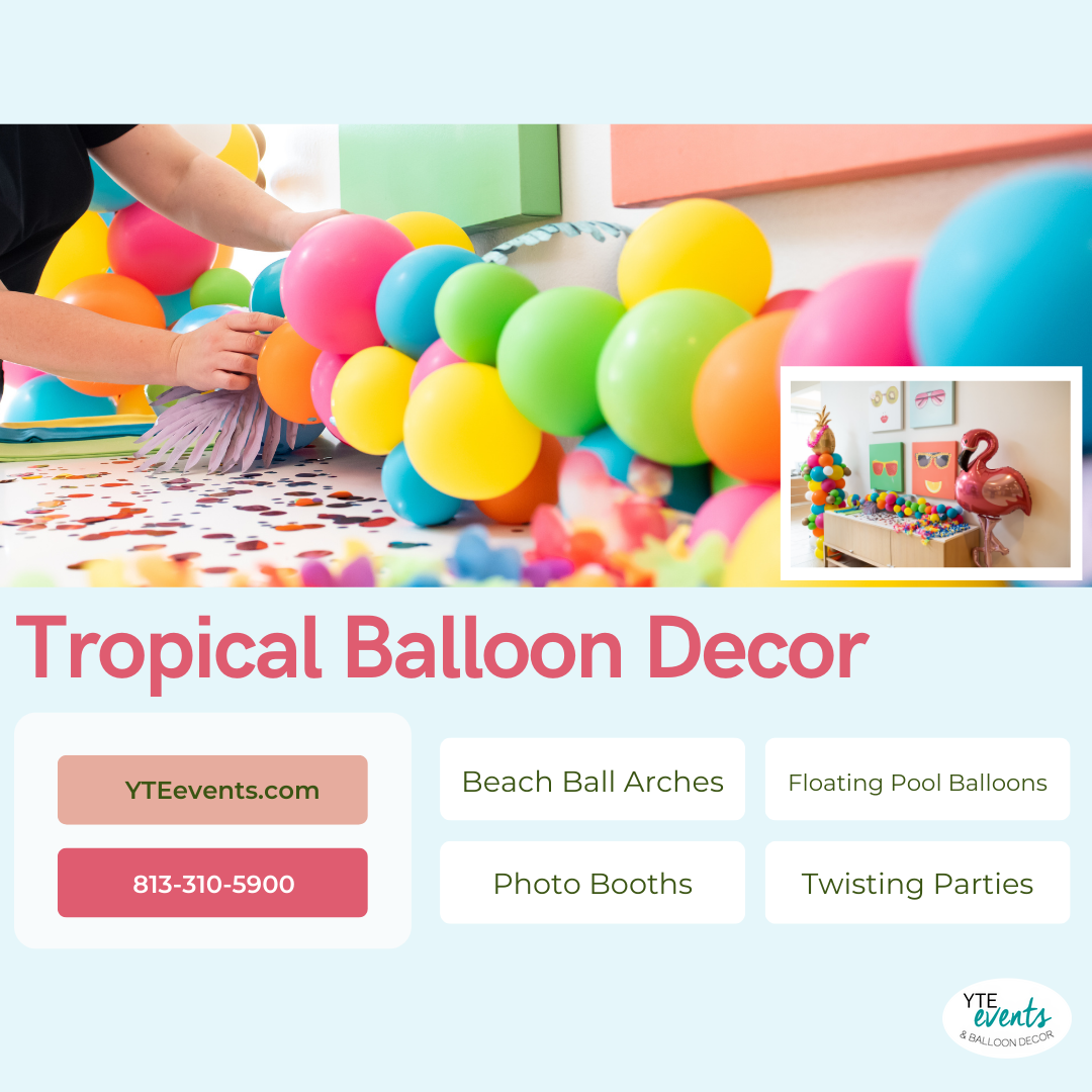 Planning a tropical pool party means thinking about both the weather and your event’s location. If your festivities are poolside, anchor your balloon decor securely to withstand breezes while still maintaining that eye-catching effect. Choose UV-resistant balloons and opt for shaded setups if you expect the Florida sun to be strong.